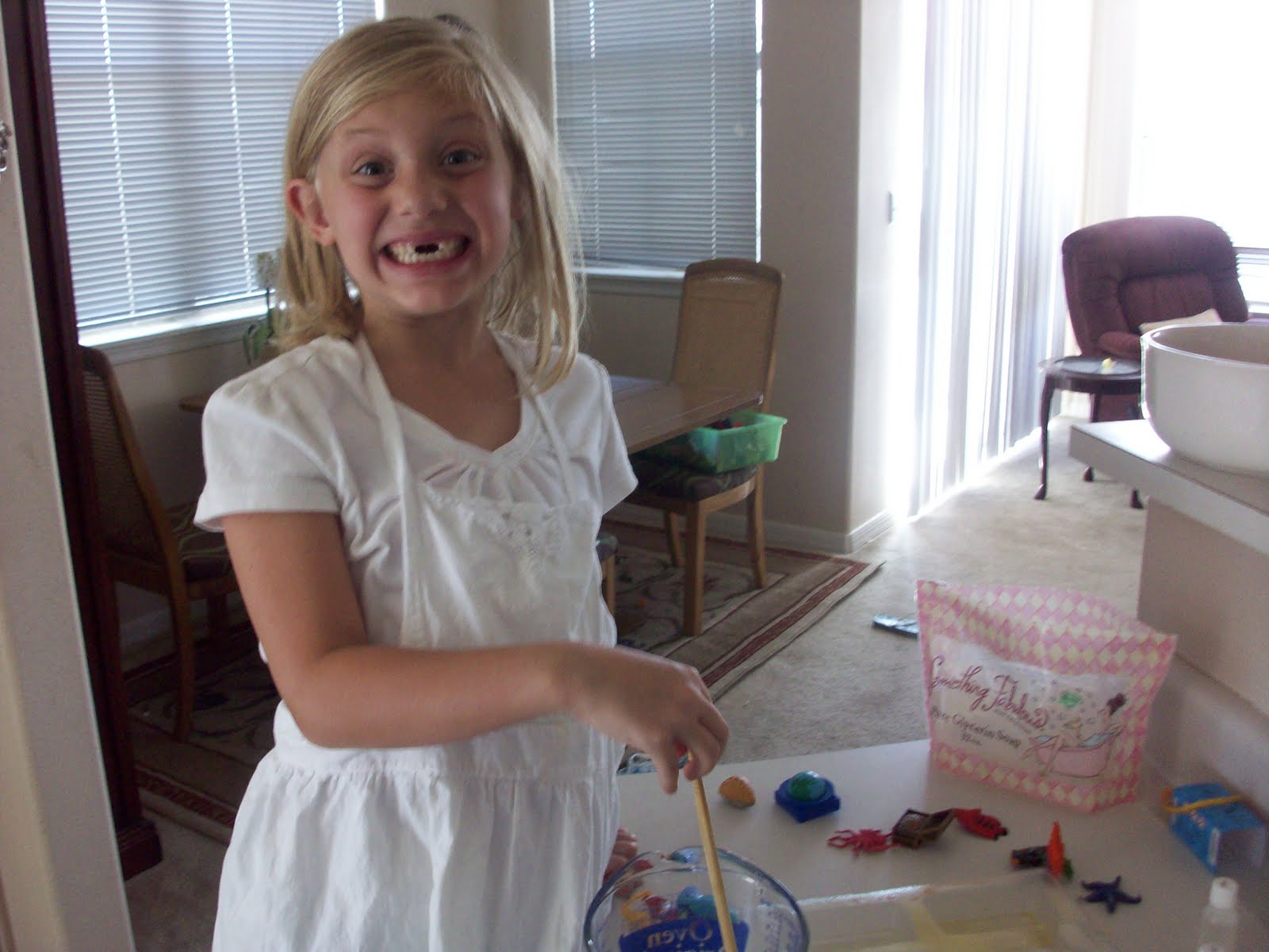 Little Love and I were browsing through some craft ideas I had and we came across the soaps with little trinkets in them. It was love at first sight – she knew she wanted to make them for her Dad for Father’s Day! She was so funny about it all! Had her little shopping list, she insisted on smelling every scent to find the right one for her Dad, and nothing would be better than fish in his soap! We had a lot of fun crafting these little soaps and they were so stinkin’ easy!